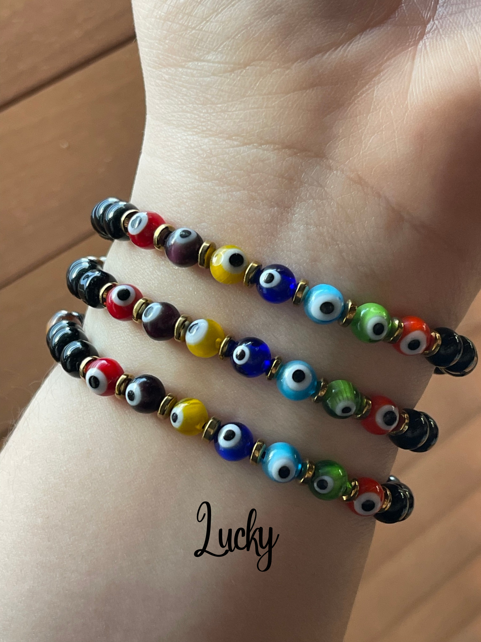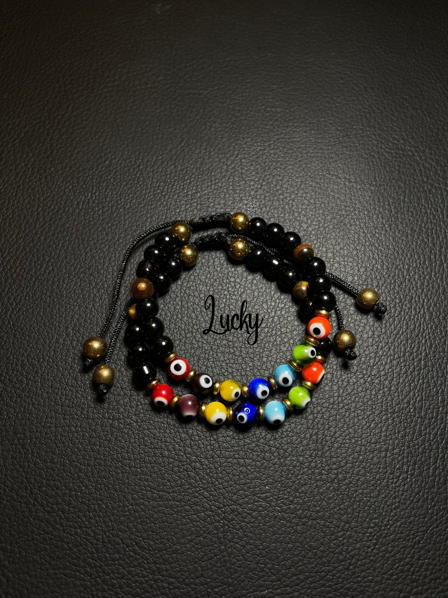 Pulsera de ojitos turcos, en ónix negro y ojo de tigre café.